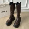 Thick-soled High Boots Women's 2025 New Autumn and Winter Brown Long Boots Trouser Boots Small Explosive Knight Boots