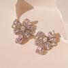 Sophisticated Diamond Bow Teardrop Tassel Earrings – Elegant Silver Needle Jewelry for Women