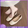 Classic square buckle thick heel gentle square head elegant temperament nude single shoes women's summer