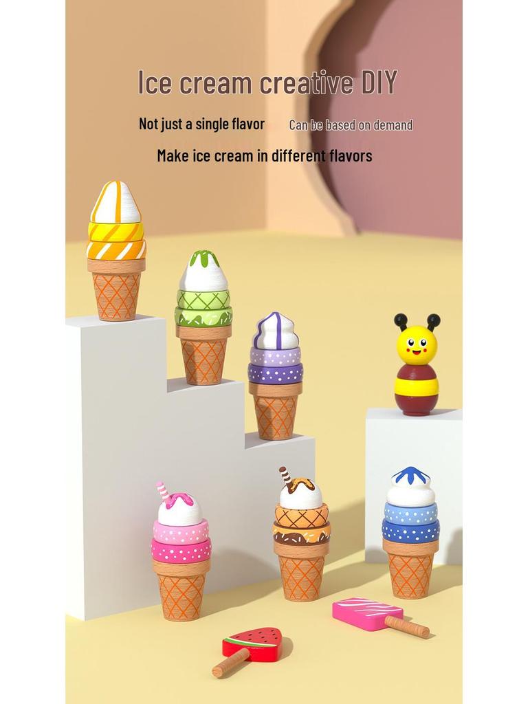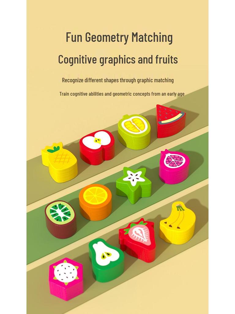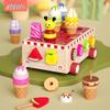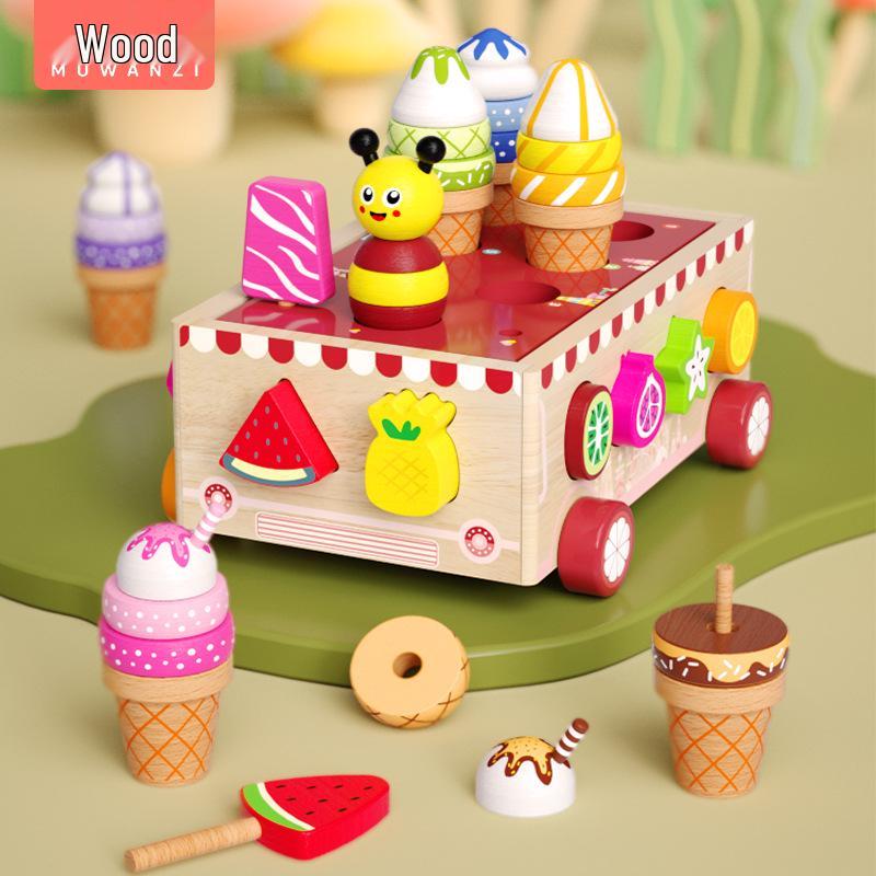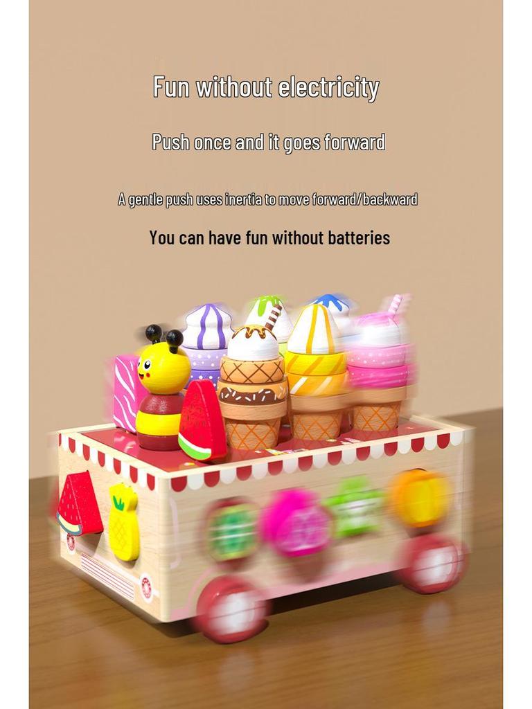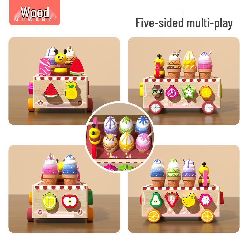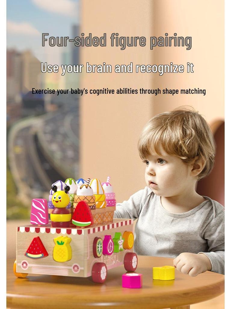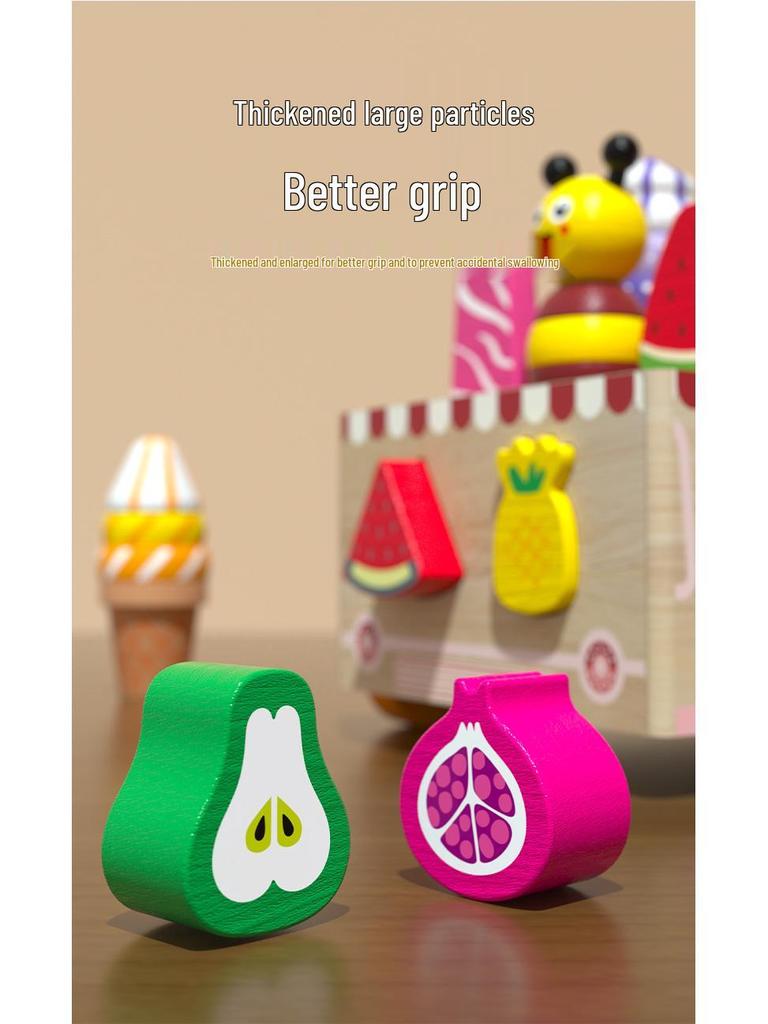 International Fruit Ice Cream Puzzle Car: Wooden Early Education Shape and Building Blocks Toy