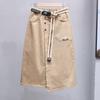This stylish and sporty denim midi skirt beautifully combines modern Korean fashion with classic elements. Designed with a high-waist fit, it accentuates your silhouette while offering comfort and flexibility. The skirt features a chic slit that adds a touch of elegance to its bodycon style, perfect for both casual and semi-formal occasions. Crafted from high-quality denim material, it ensures durability and a timeless look that complements any wardrobe.
