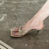 Sheepskin version~ Square head cross-strap high-heeled cool slippers femininity thin-heeled open-toed sandals for outer wear