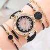 6pcs/set Fashion Women Leather Strap Flower Quartz Watch & Bracelet Set
