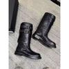 Cowhide~ Belt Buckle Soft Leather Cool Boots Women's British Versatile Thick Heel Tall Motorcycle Boots Tall Knight Boots