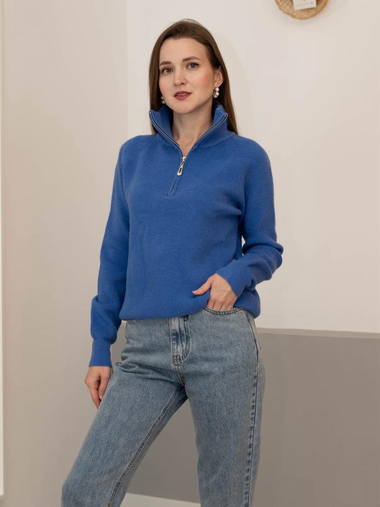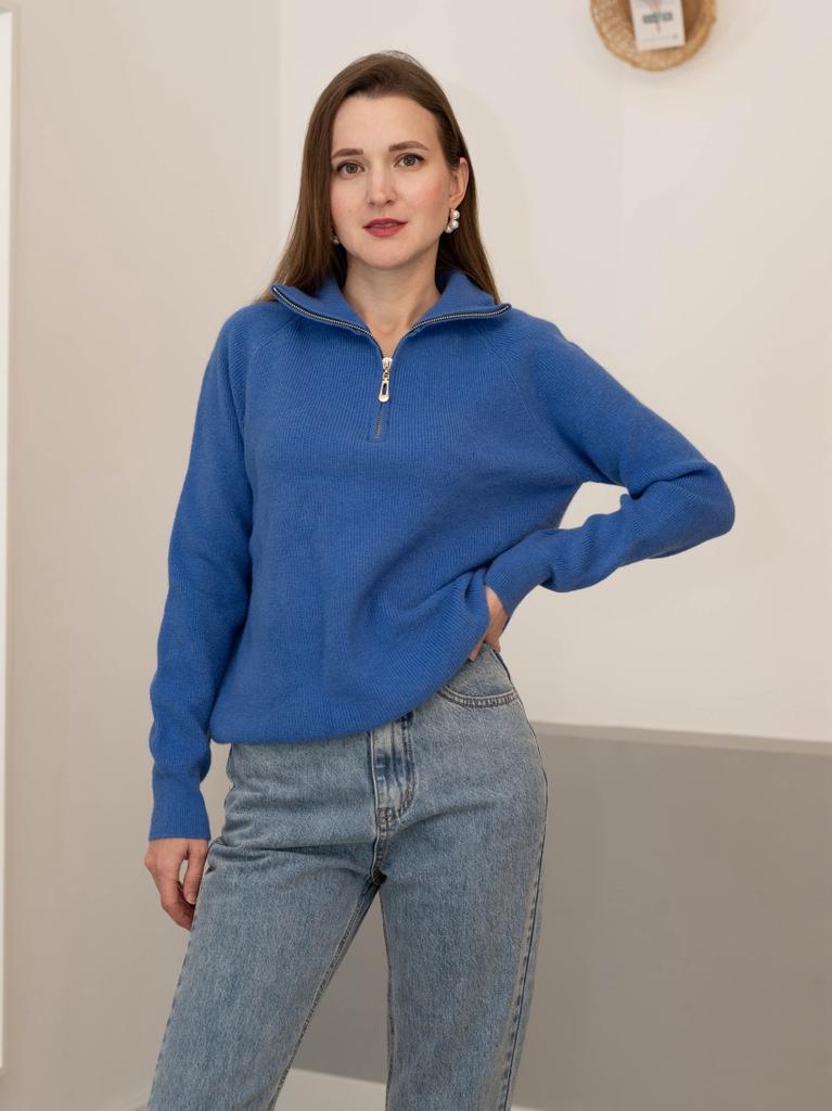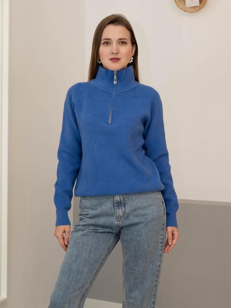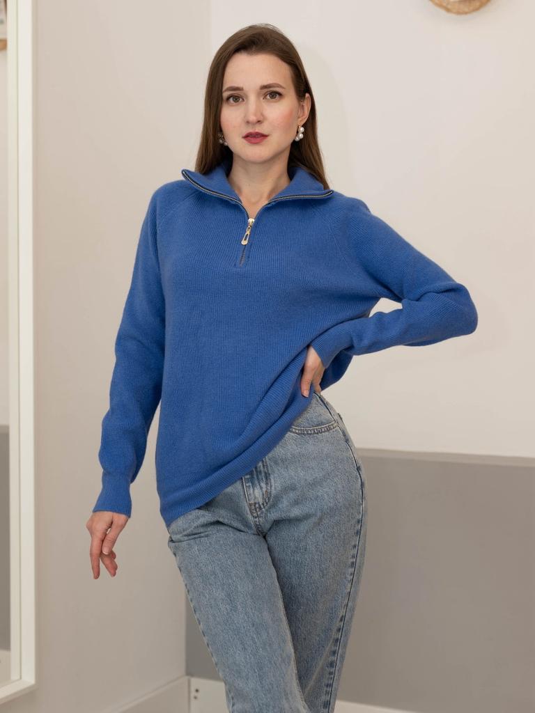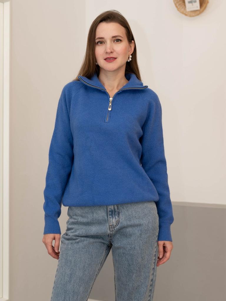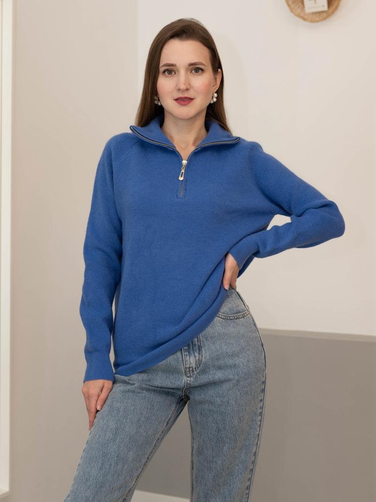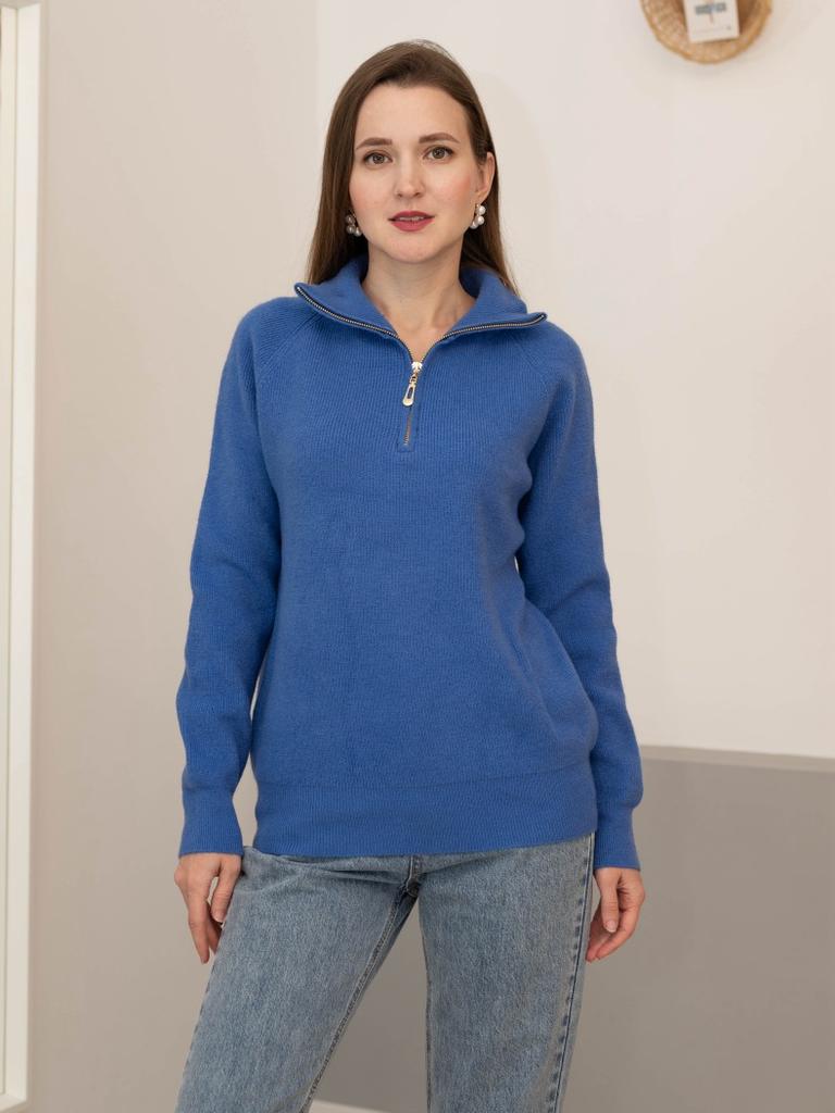 סוודר סוודר סוודר רוכסן סריג עם שרוול ארוך בצבע אחיד, סתיו וחורף מזדמנים
