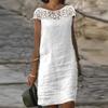 שמלת נשים זו עשויה מפשתן כותנה, ומציעה גזרה רפויה נינוחה לנוחות אולטימטיבית. הבד הרך והקל מבטיח תחושה נעימה שלא תרצו להמריא. עם צוואר עגול ועיצוב בצבע אחיד עם שחבור תחרה, שמלה זו משדרת אלגנטיות ורבגוניות קלאסית.