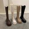 Autumn and winter new fashion leather boots solid color simple cigarette boots premium Martin boots tall thick sole spot knight boots
