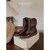Sheepskin~ Western Cowboy Boots Women's Autumn and Winter Maillard Skinny Boots Thick Heel Medium Tube Desert Boots Locomotive Boots