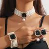 Pearl square multi-layer necklace super flash light luxury high-end earrings niche design fashionable versatile necklace women