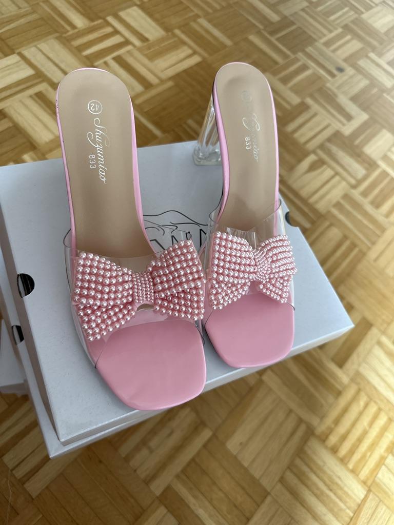 Sandali con tacco alto velati da donna Scarpe con fiocco con perline
