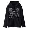 Women Hoodies Butterfly Printed Zipper Jackets Autumn Winter Casual Oversized Harajuku Sweatshirts Black Tracksuit Loose Sport Shirts