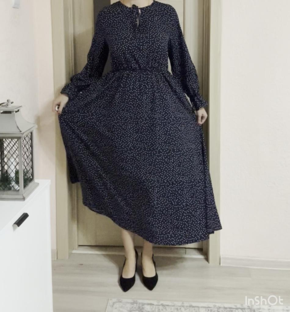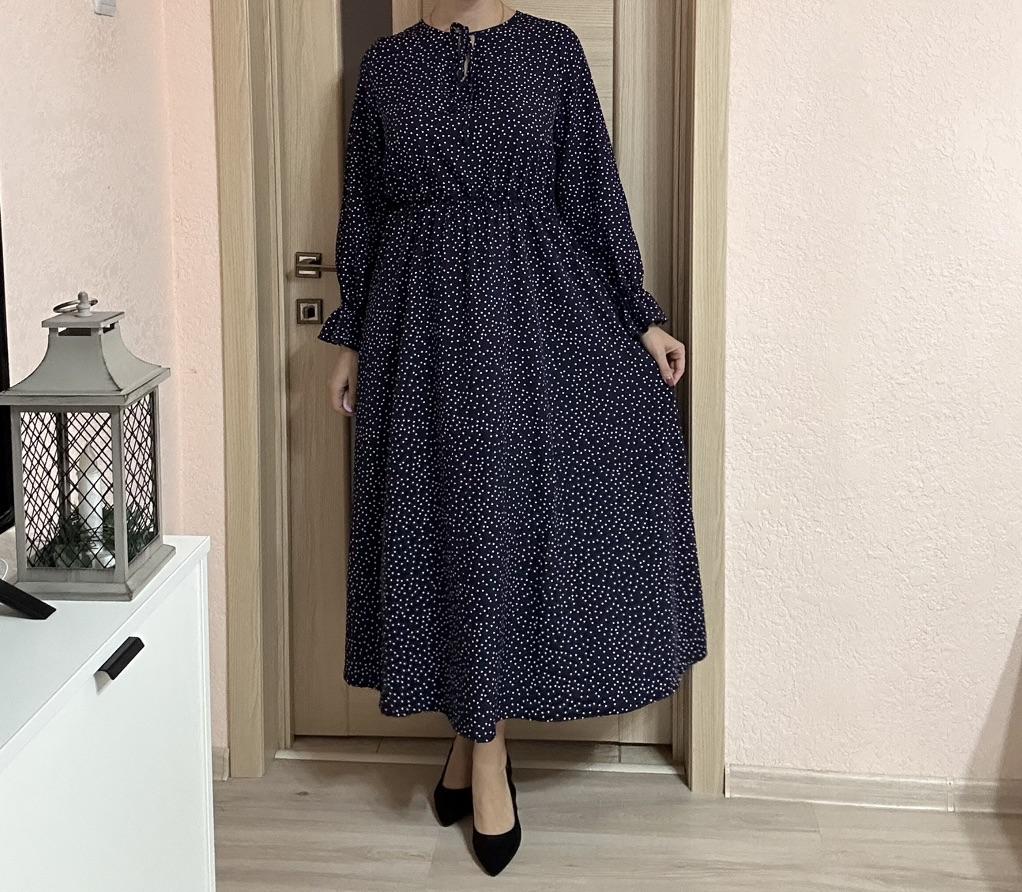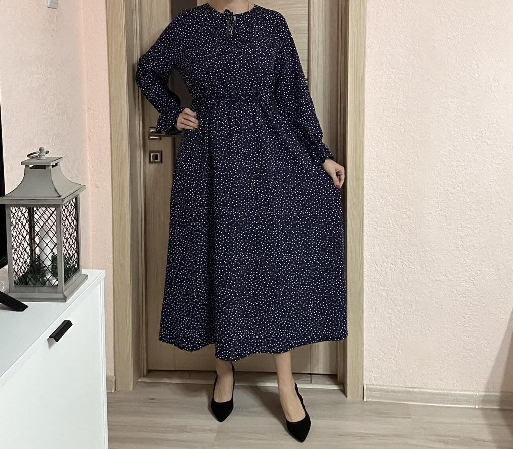 Questo vestito ha fatto centro! Iniziamo col dire che è *morbido*, il che significa che è super confortevole e lusinghiero – non troppo aderente, cade bene e fluisce con il corpo. La stampa a pois le conferisce un aspetto così senza tempo – classico, ma con un tocco giovane e rinfrescante. Le maniche lunghe a tromba aggiungono uno chic delicato e speciale, ed elevano l'intero look. Il collo rotondo mantiene un aspetto modesto e ordinato, e la lunghezza lunga della gonna è molto adatta per la primavera e l'autunno – proprio quando non fa freddo ma nemmeno troppo caldo. *Il tessuto (100% poliestere)* è leggero, non fa sudare e facile da mantenere – lavaggio a mano e basta, senza drammi. In conclusione, questo è un abito meraviglioso per tutti i giorni o per eventi informali, estremamente comodo, ha un aspetto fantastico e veste bene anche un corpo formoso. Un abito che fa venire voglia di uscire di casa! 💃