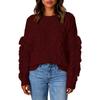 Women's Winter Loose Diamond Tassel Solid Color Pullover Round Neck Knitted Sweater