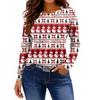 Maglietta da donna alla moda casual con spacchi sul fondo, scollo rotondo, manica lunga, ampia, stampata