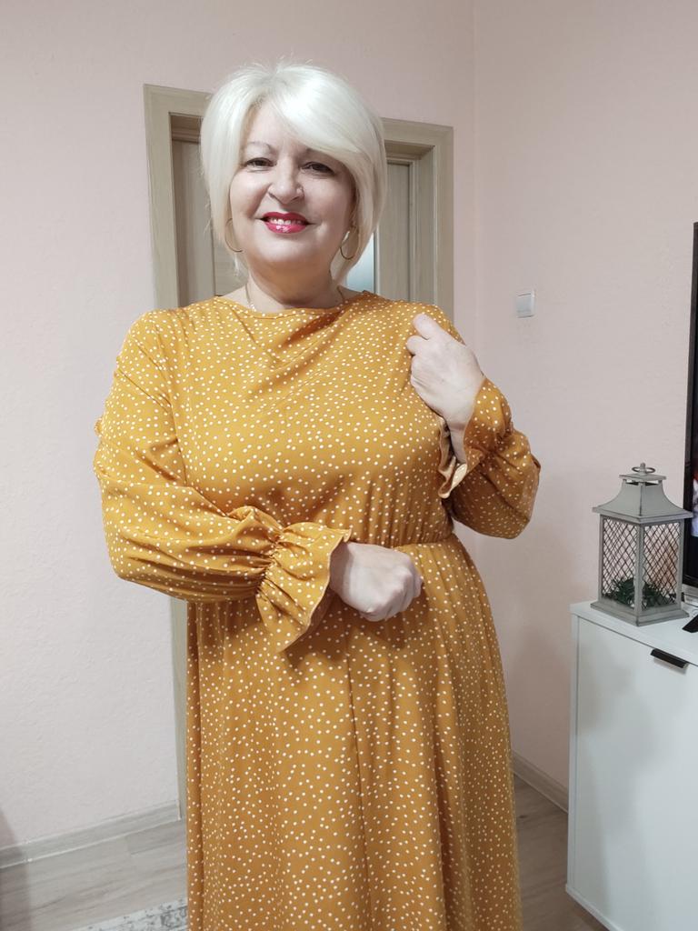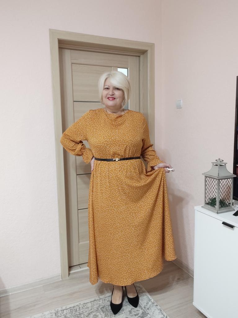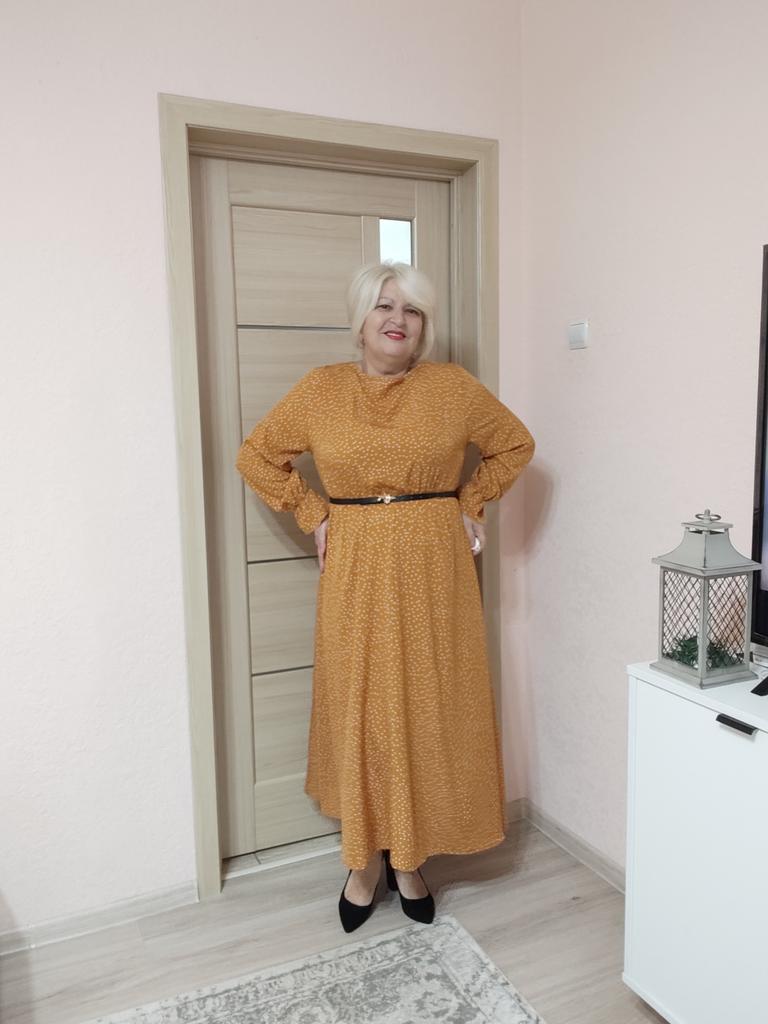 Gorgeous 🤩 polka dot dress Delivery time: 25 days in Italy. Package contents ☢️: The package includes a 100% polyester dress. The dress fabric is light and comfortable, with no stretch. Perfect for autumn or mild temperatures. 👍 The dress, with its linear lines, is truly elegant and stylish. You can make it unique with a belt, a scarf, or a jacket. The product is available in several colors, and the color is exactly as shown. Size XL. The dress is only available in large sizes, but thanks to a belt, it fits me perfectly. My measurements are 75-69-93 cm. The dress is very comfortable. ! I'm very happy! 🔝👍Everything matches the description. The dress is AMAZING!!! ☀️Summary ✳️: dress I recommend it!!!! 5 stars 🌟 🌟 🌟 🌟 🌟! Thank you Joom and the seller! 👍☀️