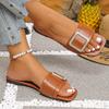 Fashion Ladies Shoes 2024 New Square Toe Women's Slippers Summer Rome Open Toe Solid Outdoor Flat Casual Beach Large Size Slippers