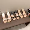 Fairy style square head slope heel slippers femininity apricot fashion open-toed sandals outer wear summer new models