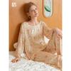 24 New Peter Pan Collar Women's Rayon Satin Floral Print Pajamas Suit Long Sleeves Pants Can Be Outerwear Homewear