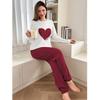 Autumn Women Sleepwear Long Sleeve Heart Tops and Long Pants 2 Piece Set Pajamas Set Casual Homewear Loungewear