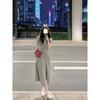 Modāla kleita Sieviešu vasaras kleita, šaura, šaura, šaura, īsām piedurknēm virs ceļgala vidēja garuma kleita