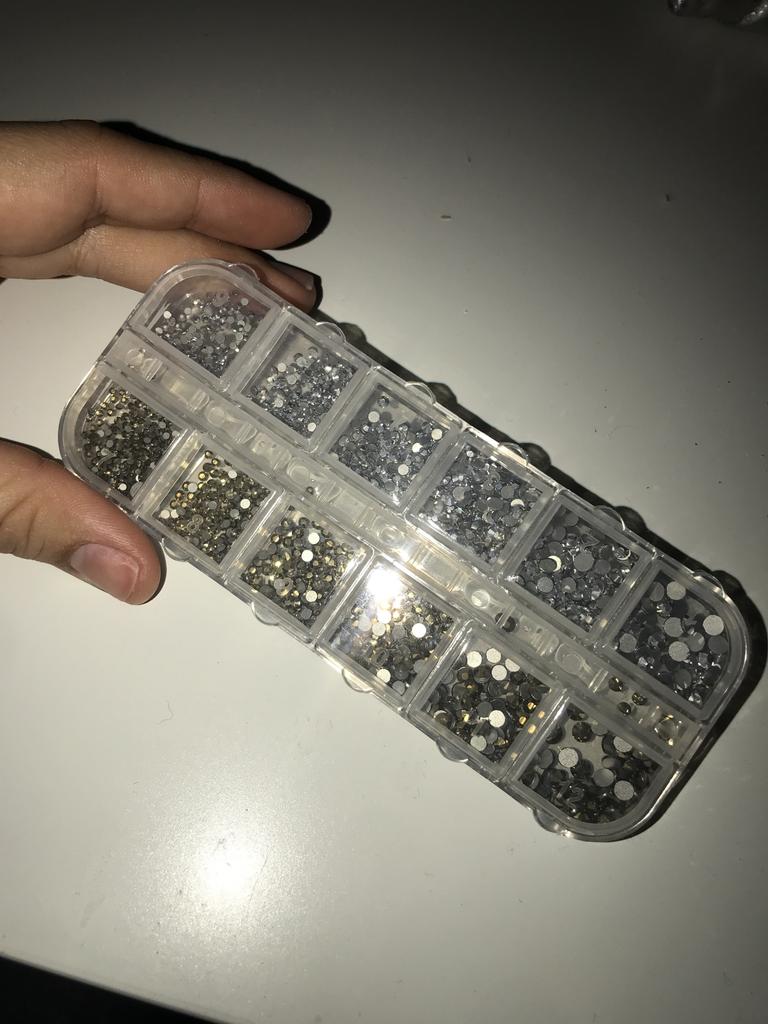 Nail Art smykkesett Høy Sølv Flat Diamond AB Water Diamond Shiny Diamond Lang Bar Box 1440stk