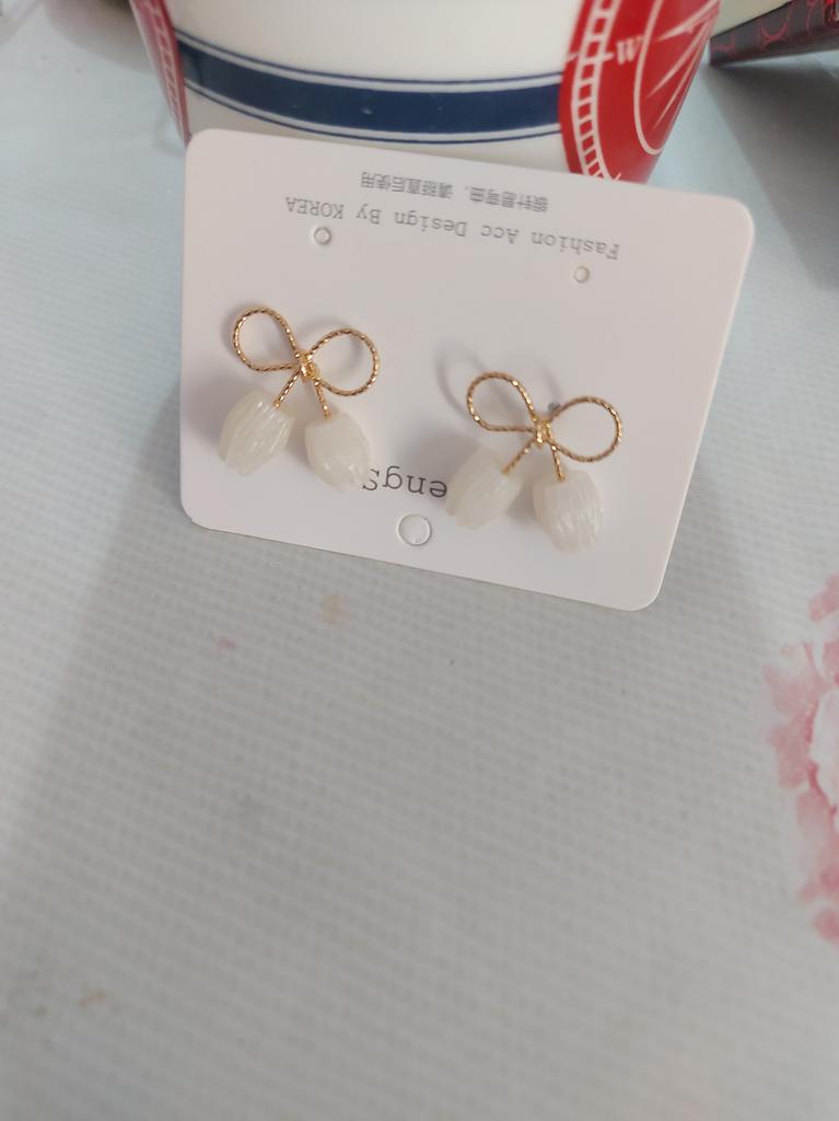 1 par Elegant White Shell Tulip Sløyfe Anheng Øredobber Dame Personlighet Fairy Bow Girly Charm smykker