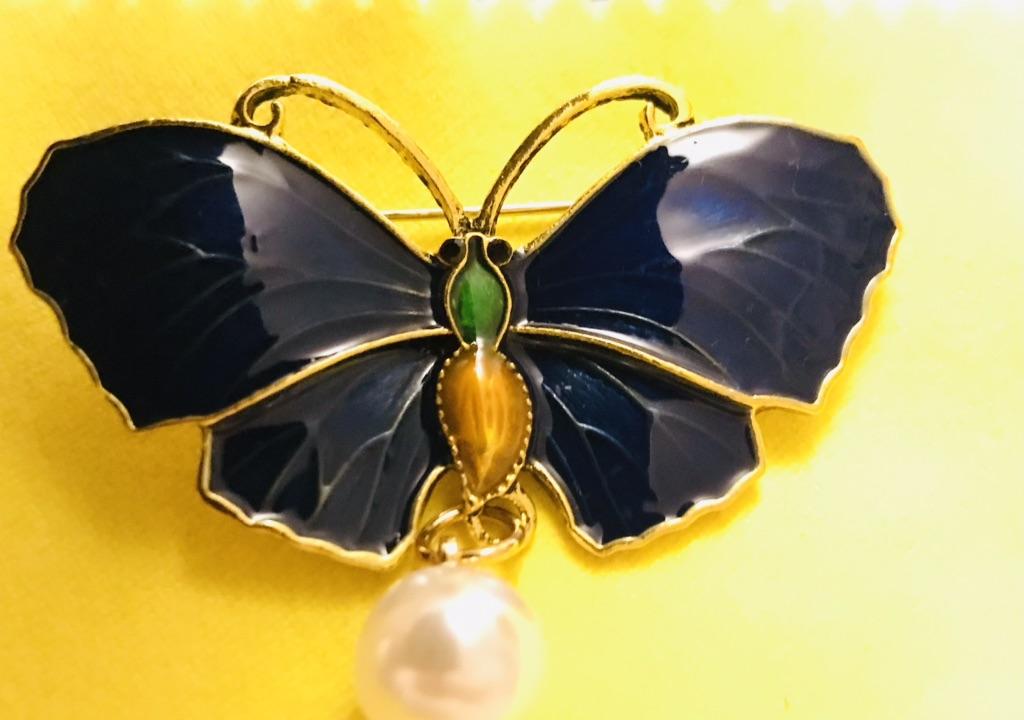 Kvinner Ins Pearl Butterfly Brosje Pin Crystal Corsage Gjør-det-selv Klærtilbehør
