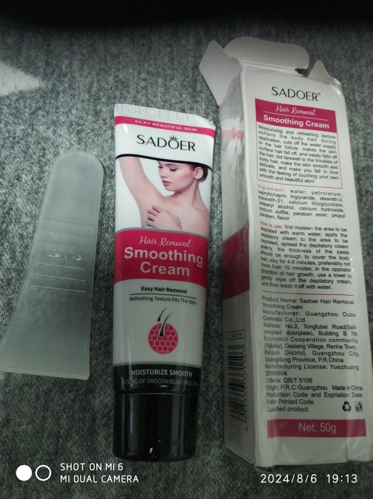 Bruksmetode: Etter å ha fuktet området som må depileres med et mildt vått håndkle, påfør dette produktet jevnt på hårfjerningsstedet, og tørk deretter hårfjerningskremen jevnt med spesialverktøyet som følger med. Bruksmengden skal være helt dekket med kroppshår(ca 2 mm tykk)og hold i 5-8 minutter(avhengig av tykkelsen på kroppshår).Tørk forsiktig av med et spesialverktøy(eller bruk et håndkle) langs motsatt retning av hårvekst, og rengjør deretter med vann.