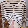 Høstgensere O-hals Stripe Strikket Dame Cardigan Mote Langermet Casual Korte Overdeler Koreansk Stil Knktwear 29073