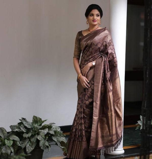 Vakker Golden Jari med ny design Soft Lichi Silk Saree