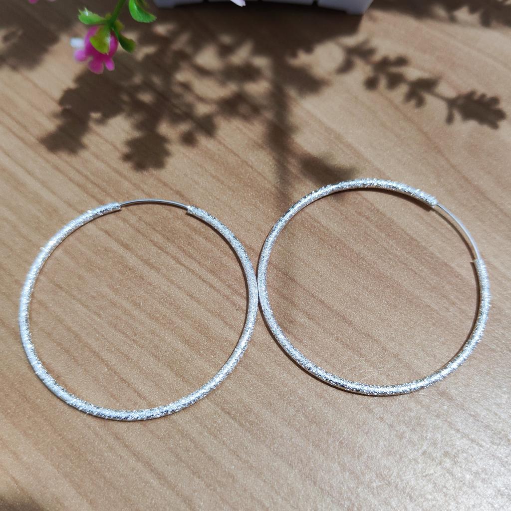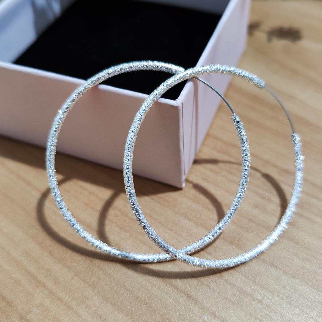 Sølvbelagte øredobber 5,1 cm fasjonable boutiquesmykker sandring frostet S925 sølvøredobber sirkulære