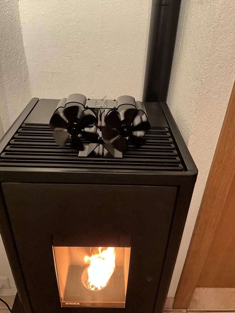 Dobbelthode 6-blads varmedrevet komfyrvifte med bærehåndtak og bærbar overopphetingsbeskyttelse