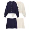 Nytt sett med langermet genser og skjørt med dobbel glidelås for kvinner høst og vinter, casual ensfarget todelt skjørtsett, elegante 2-delte strikkekjolesett 24825