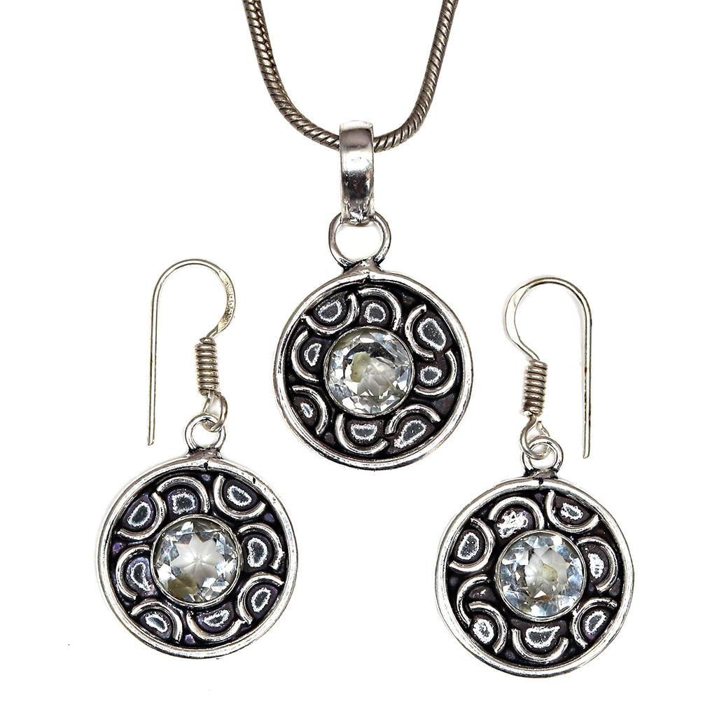 Topaz Set White Pendant Earrings Jewelry Necklace Gemstone Blue