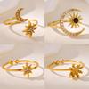 Yaonuan New Trend Opening Adjustable Gold Plated Copper Ring For Women Star Moon Inlaid Zircon Finger Jewelry Accessories Daily