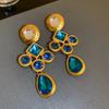 Diamonded earrings temperament ladies and ladies wind ancient earrings exaggerated contrast faceted earrings earrings.
