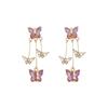 Sweet Gentle Pink Purple Butterfly Geometrictassel earrings Fashion Female Mosquito Coil Imitation Pearl Rhinestone Ear Clip Without Ear Holes