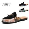 Fashion Bright Leather Designer Luxury Brand Mens Fashion Slippers Summer Comfort Half Sandals For Men Mules Casual Shoes Slides Loafers