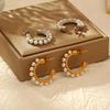 Vintage French C-Shaped Pearl Earrings – Retro Silver Needle Metal Design