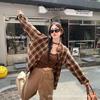 Spring Autumn Plaid Shirts Women Retro Turn-down Collar Blouses Button Up Elegant Long Sleeve Outwear Femme