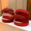 2025 Retro French Plaid Red Velvet Headband for Women - Christmas Autumn/Winter Edition