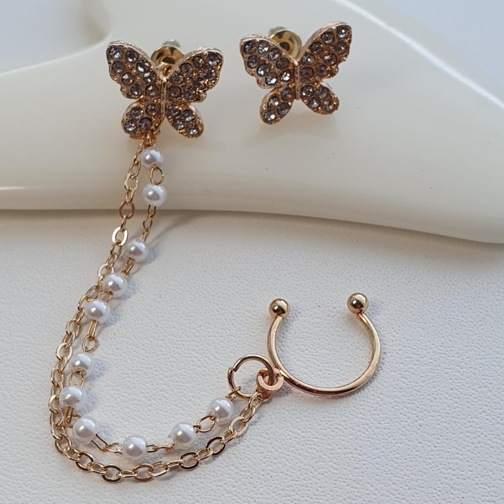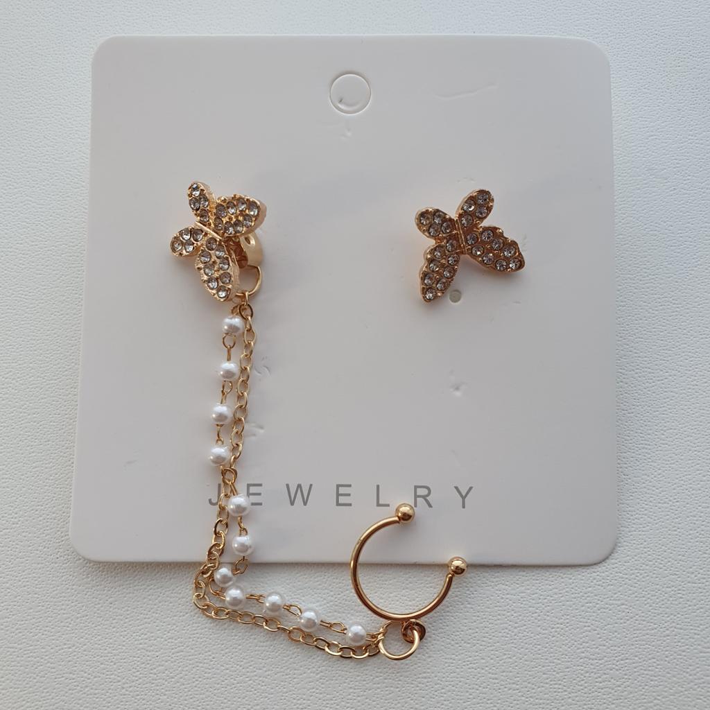 Butterfly stud earrings femininity Korean personality earclip earrings integrated super fairy fringed earrings