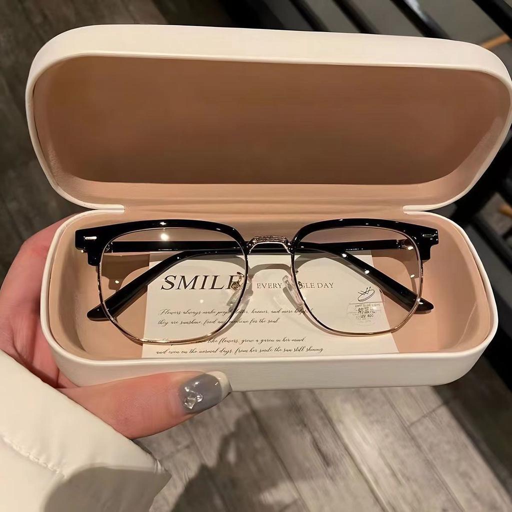 Retro Half-Frame Eyebrow Glasses Frame Male Anti-Radiation Plain Face Trendy Cool Anti-Blue Light Eye Protection Flat Light Glasses Female