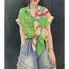 Y2K Summer Casual Fashion Diamonds Patchwork Chiffon Shirt Lady Short Sleeve Loose All-match Buttons Tops Women Printed Blouse
