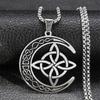 Fashion Silver Color Crescent Moon Irish Celtics Triquetra Knot Pendant Necklace Amulet for Women Men Supernatural Jewelry MIT