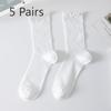 5 par sommer tynne dame sokker med treørekant, midt på leggen, pustende mesh, nuppefrie bomullssokker, stablede Lolita-sokker