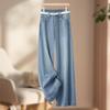 Discover the perfect blend of style and comfort with these high waist retro wide leg jeans. Exquisitely crafted from quality denim, these jeans offer a slimming yet loose fit that drapes elegantly, enhancing your silhouette. The high waistline design accentuates your curves, making it a flattering choice for any casual occasion. Ideal for both spring and autumn, these trousers provide a timeless addition to your wardrobe that effortlessly pairs with a variety of tops. Embrace a retro vibe while enjoying the modern comfort and versatility of these striking wide leg jeans.