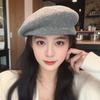 Autumn and winter beret small round label temperament wool hat female face small high quality elegant warm painter hat light luxury