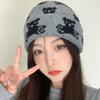 Autumn and winter new cartoon cat knitted hat female personality versatile cold hat warm wool hat elastic bald hat
