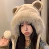 Cute bow bear cat plush hat female autumn and winter show small face warm ear protection big head circumference hat